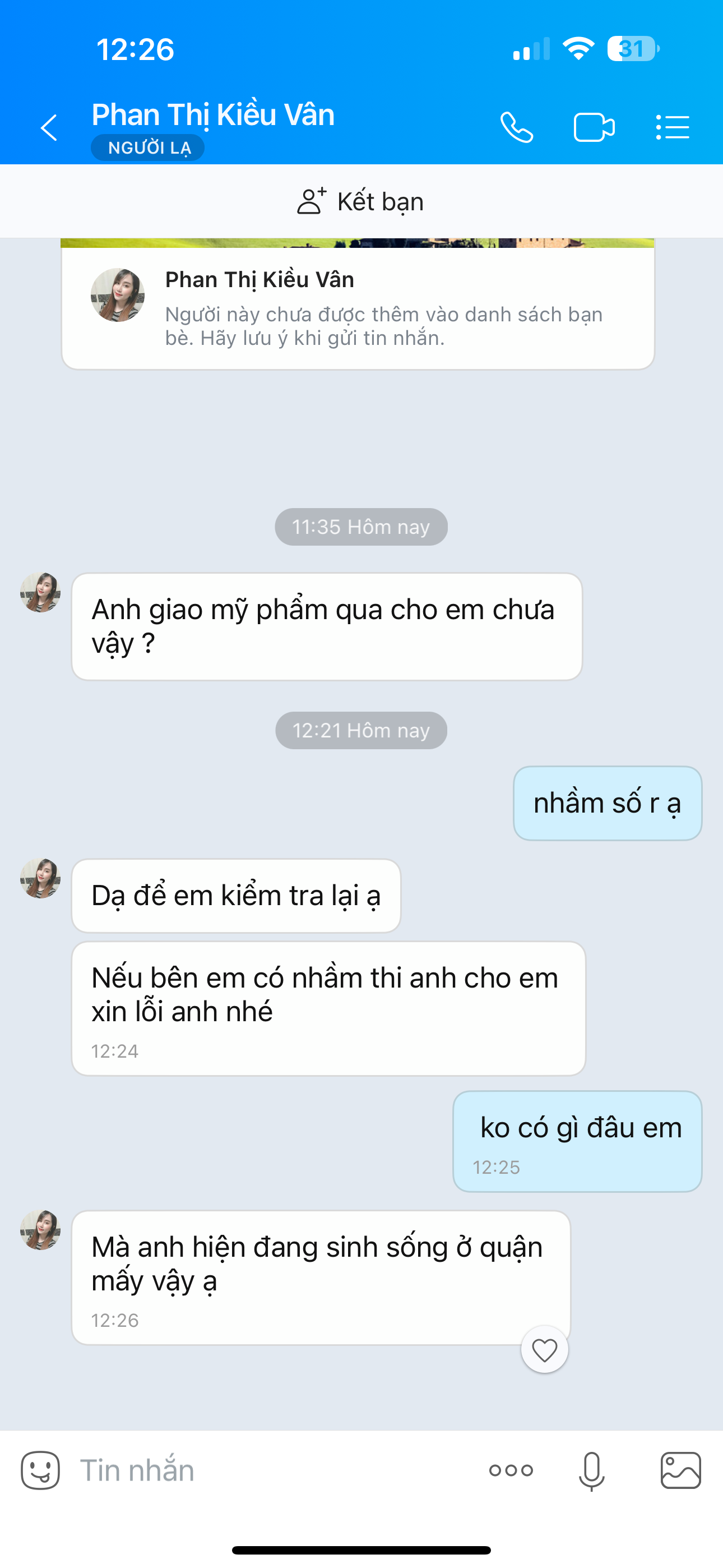 Sao tao hay bị nick zalo lạ nhắn tin kiểu hỏi về : anh tới đón em chưa, a có phải làm bên này bên kia, sao chưa giao hàng cho em Khi tao nói nhầm thì bắt đầu xin lỗi rồi lái qua chuyện khác Có ai bị giống t ko