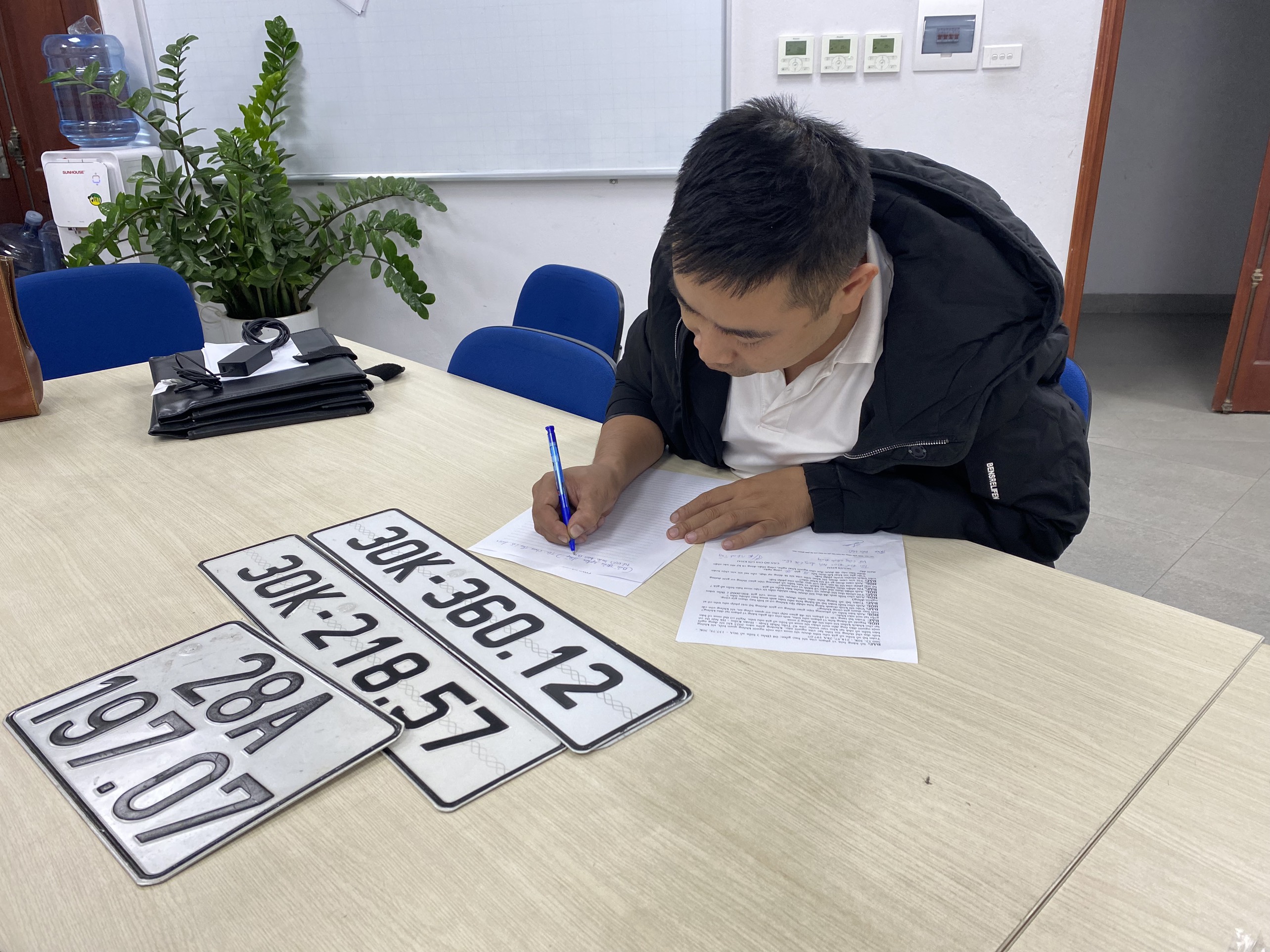 Sau khi nghe giải thích hành vi mua bán biển kiểm soát xe giả là vi phạm pháp luật, các chủ cơ sở đều đã nhận thức được, đồng thời ký cam kết không tái phạm.