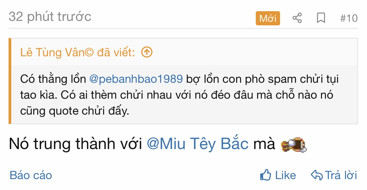 E này tạo nhiều acc nên có thể để tên khác kp tên Miu. e Miu bố láo và lồn nát thì đích thị là e này nhé ae.