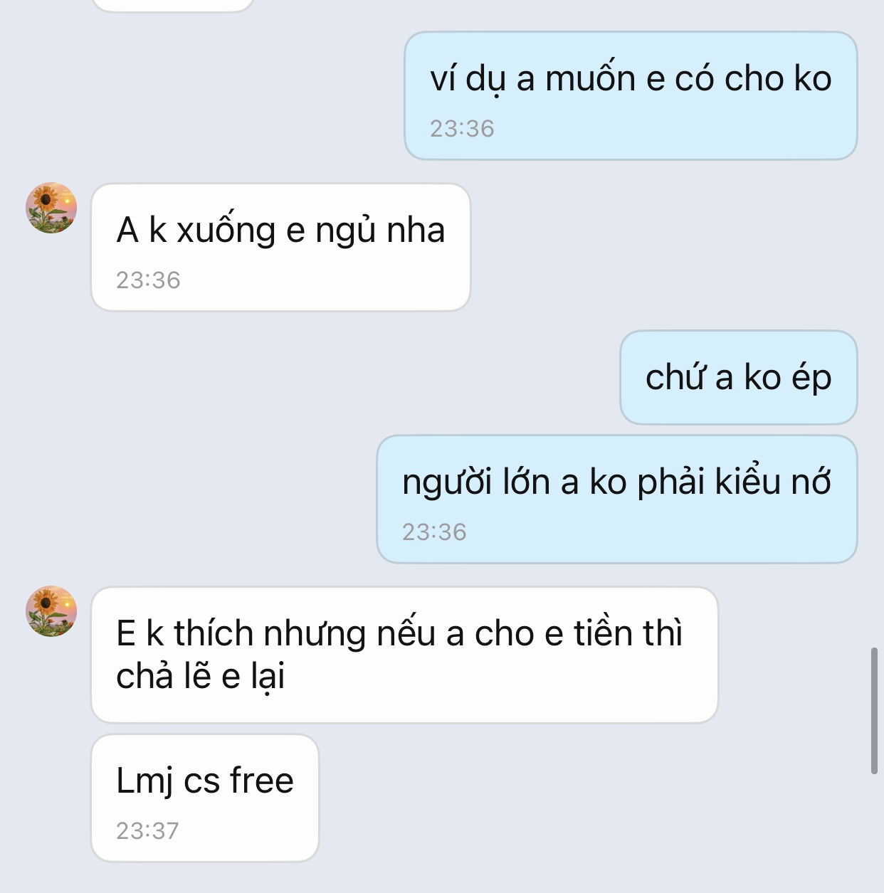 Tml thích hàng 2k6 ib t cho. Còn này thích tiền chỉ cần cho nó tiền.