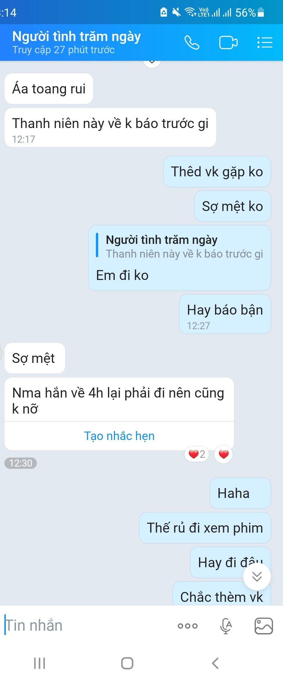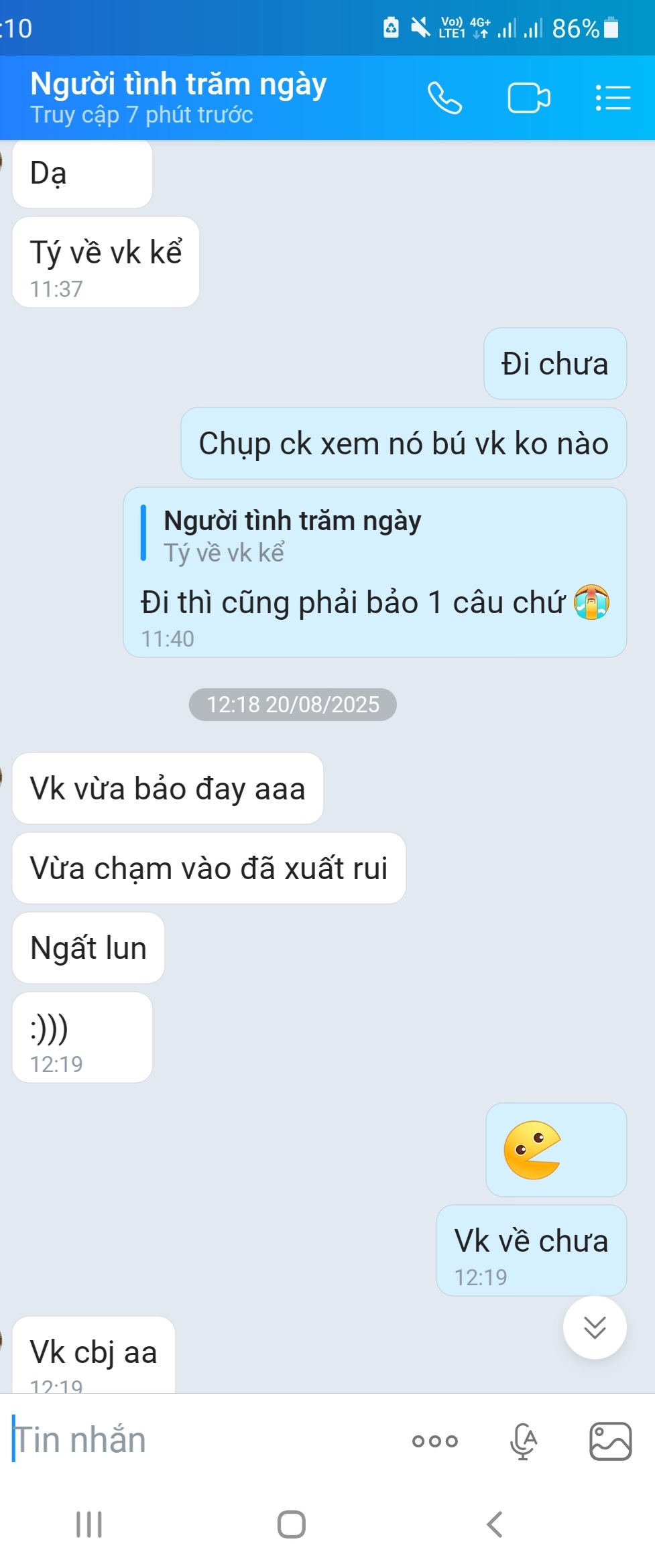 Update đến giờ này thì mất liên lạc với người yêu t rồi. Chắc thằng kia vừa đón xong