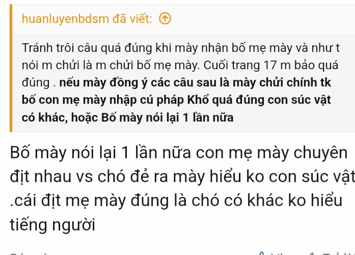Bố mày nói lại 1 lần nữa con mẹ mày chuyên địt nhau vs chó đẻ ra mày hiểu ko con súc vật .cái địt mẹ mày đúng là chó có khác ko hiểu tiếng người