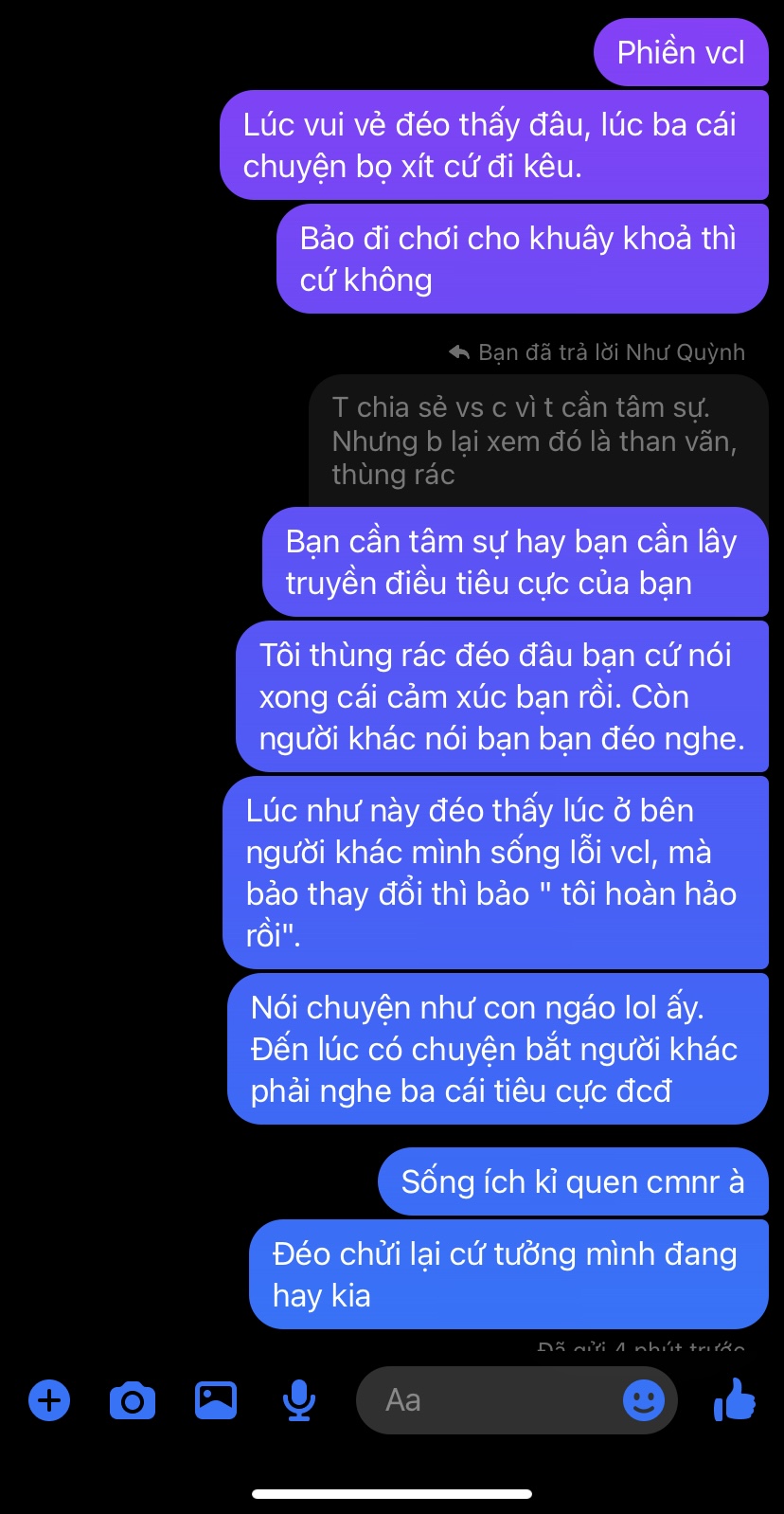 T bực t chửi xong từ đó t im luôn 4,5 ngày.
