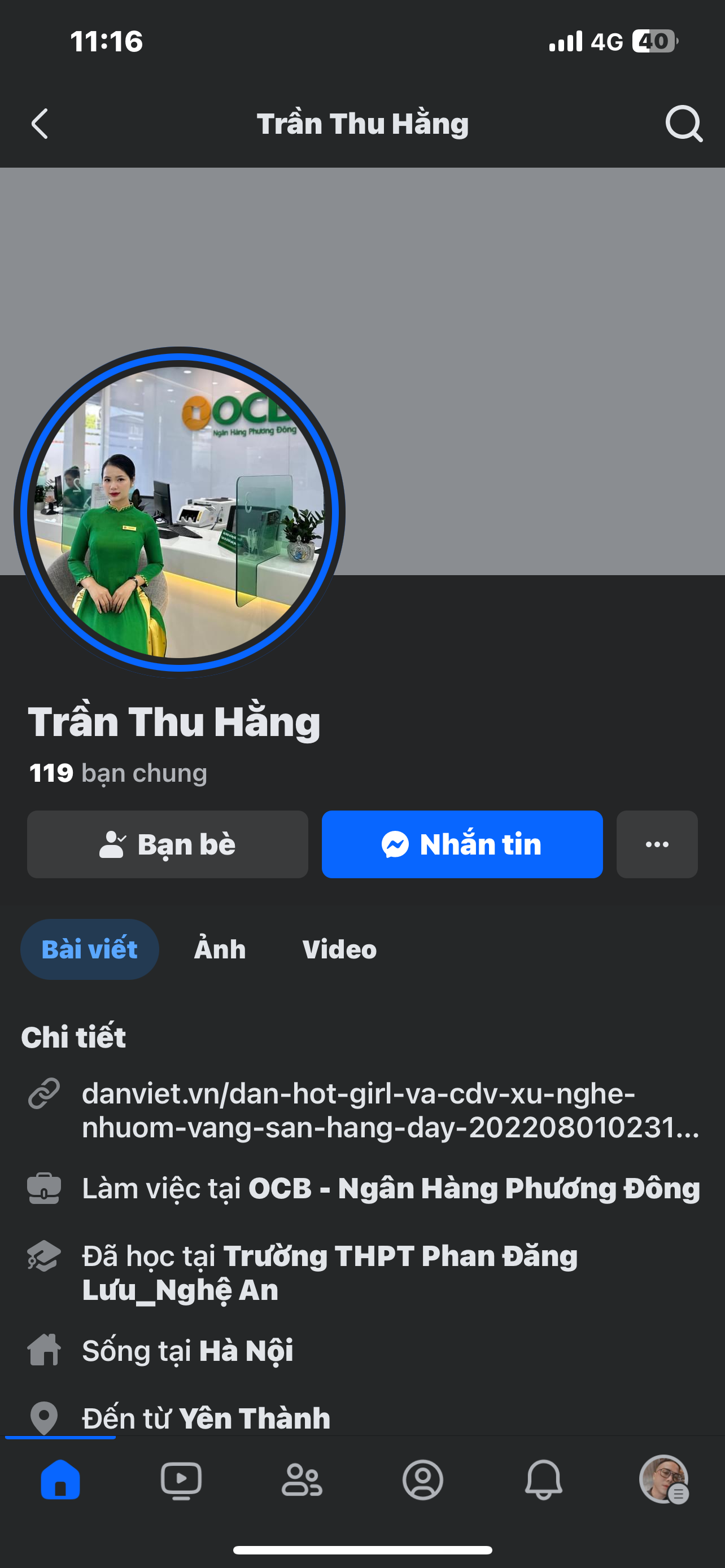 Uh tao có info nó người yên thànhVào tiktok tìm nick thuhang22498 nhé bác