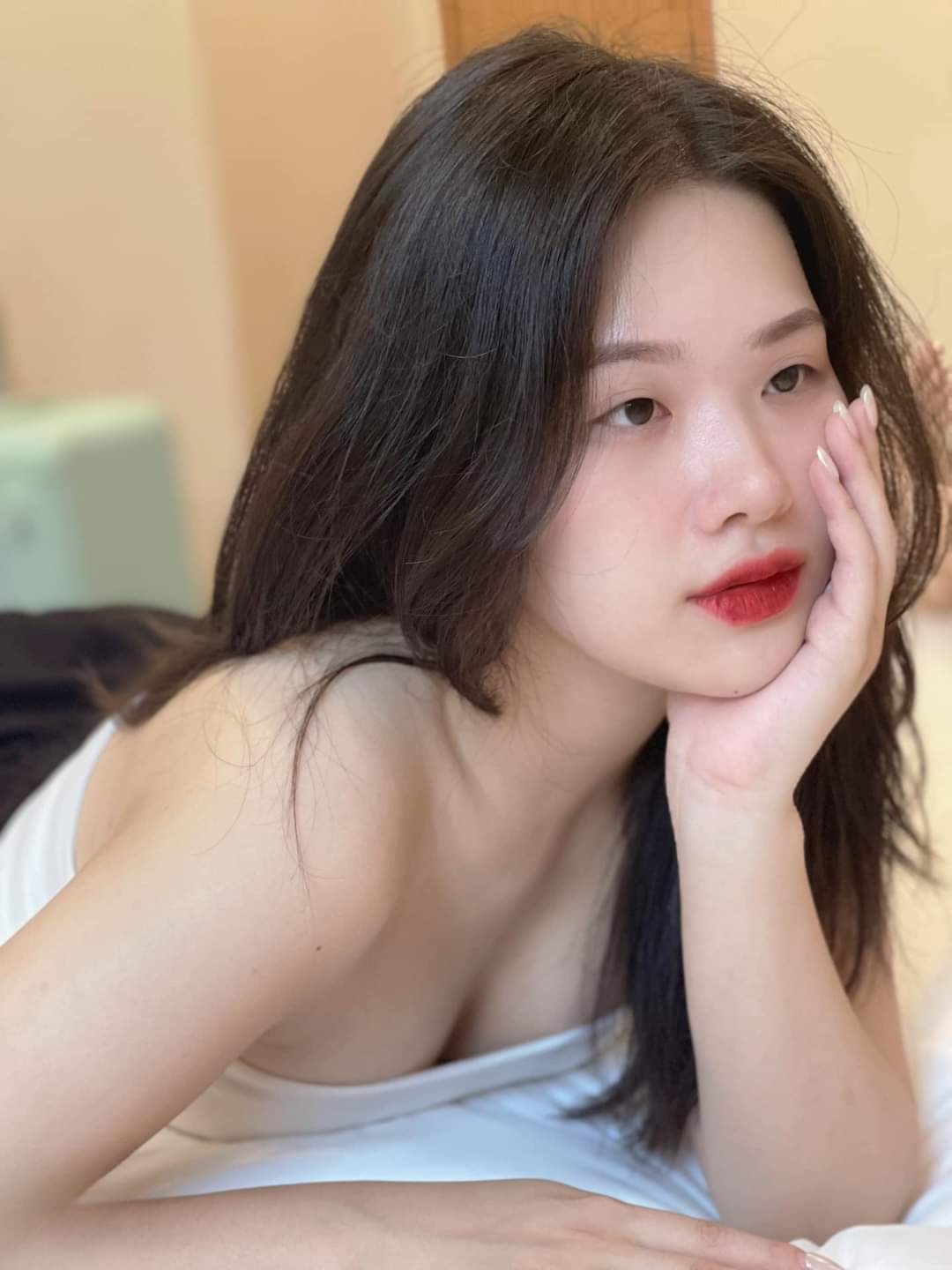 Em nó bên ngoài trắng, xinh, hơi lipit tí