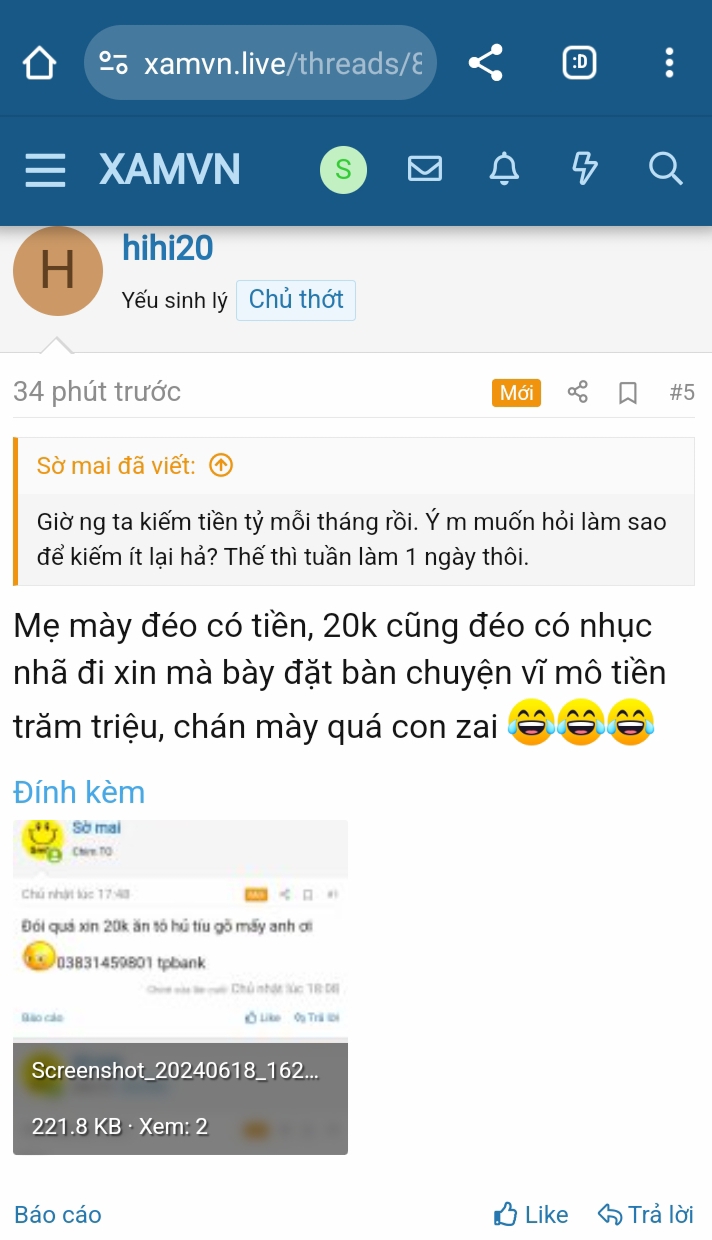 Giá đất ruộng chỗ t 1 công 60-70tr, đất tốt có kế đường thì cả trăm triệu. Còn cái nhà t đang ở thấy ghi đất ở bìa đỏ 2006 giờ là thổ cư chưa t cũng k rành, nãy t nghĩ lên thổ cư rồi. Tại gần nhà t có bà mua cái nền diện tích tương đương mà hơn 200tr. Mà cậu t ổng cũng đc chia miếng kế bên chứ có phải k đc đâu. Lúc ổng ra riêng ông bà t cũng cho ổng nền tương đương để ở chứ có để ổng lang thang đâu. Còn chuyện cái nhà của ổng: Ông bà t bảo ổng có vợ con rồi thì ra riêng đi ông bà cho cái nền đối diện (khi đó mẹ t mới 17 18t) thì ổng bảo chưa có tiền làm nhà. Ông bà t thấy vậy kêu ổng ở nhà hiện tại của ông bà đi, ông bà với mẹ t làm nhà ở nền đối diện ở. Ổng đồng ý xong đến lúc cất nhà xong rồi thì ổng nằng nặc đòi ở cái nhà vừa cất đối diện đó với lý do con cái để ba mẹ dọn ra vậy xem k được. Chục năm sau ổng lại đòi bà t phải cắt nền nhà t ra cho ổng thêm 1 phần. Khi đó ổng đã có của ăn của để, ổng đã có10c ruộng, có nhà đc ông bà t cất sẵn ở đối diện, ổng còn mua đc 2 cái nền ở 2 chỗ khác mà vẫn đòi bà t cắt nền ra cho ổng thêm 1 cái. Ba mẹ t khi đó còn phải thuê đất ruộng của người khác để làm nuôi bà t. Ổng toàn nghe vợ giành hết cái này đến cái khác với anh chị em.T chả biết m nông thôn vùng nào . Nhưng m bảo đất thổ cư giá 200-300 tr thì cho t địa chỉ t mua luôn . Chỗ t 4 phía là ruộng. Trước ng ta làm cái chòi trong vịt thế đéo nào 15 năm trước thành cái bìa đỏ 180m2 giờ chủ nó đòi cả tỉ ng ta chả 750tr đéo bán.