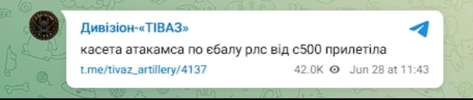 Đơn vị pháo binh Ukraine TIVAZ viết: tên lửa ATACMS đã phá hủy hệ thống phòng không S-500 của Nga trên bán đảo Crym. Một hệ thống này có giá trị khoảng 600 triệu USD.