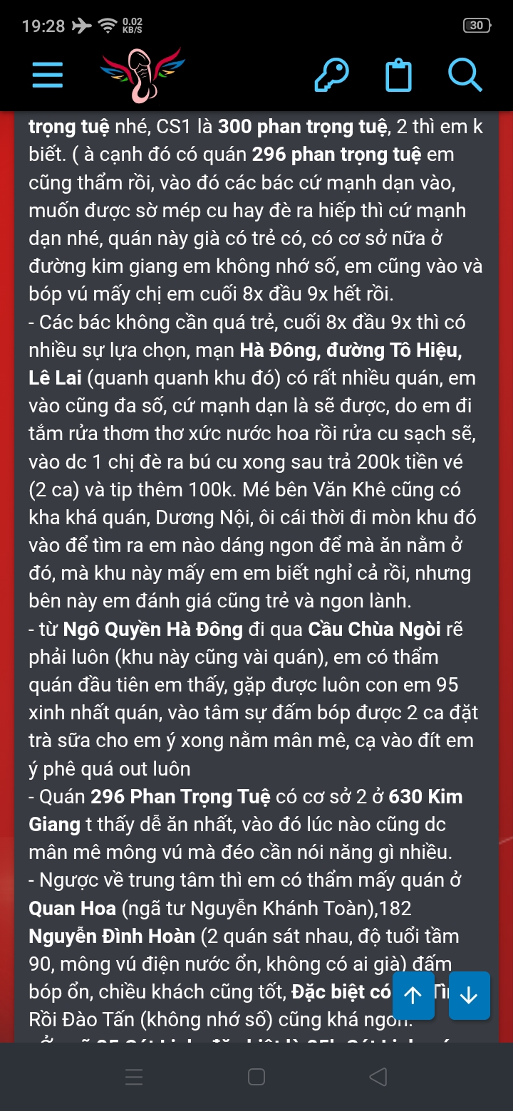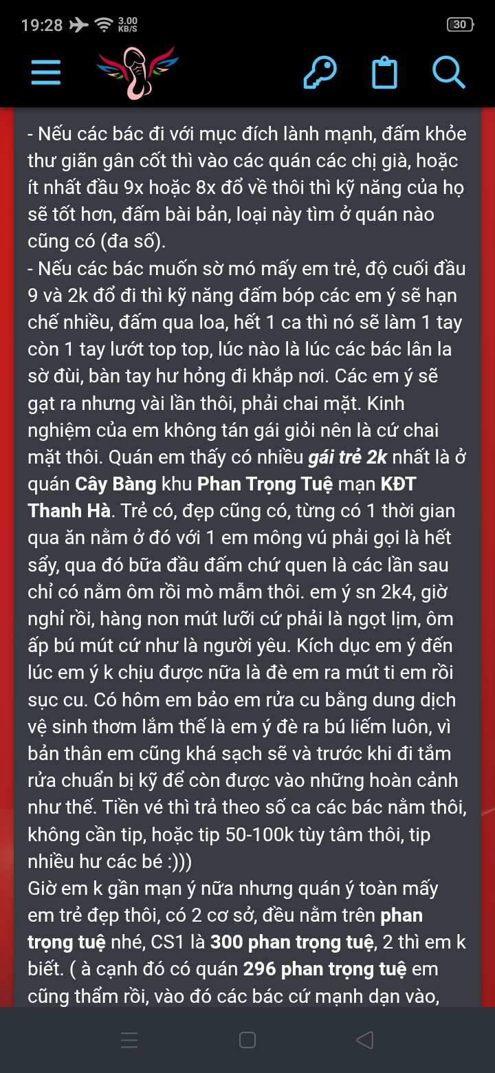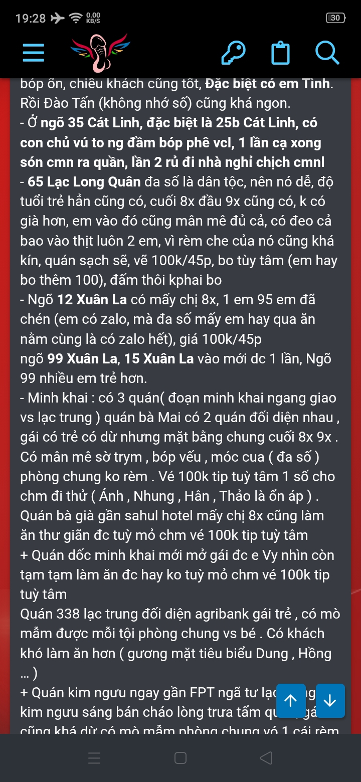 Hóng. Quán nào TK đấy bro ?mới đi 1 quán lành mạnh ở bên tân khai. 100k vé. vào cũng đéo lành mạnh gì cả. e ra đón mình còn đang ngậm tinh của ông nào chưa kịp nhổ ạ. ngày xưa cứ nghĩ đi lành mạnh khó khăn. nhưng mà thôi. mấy e ấy skill éo gì. đút 2 phút ra luôn ạ