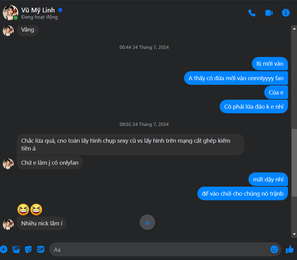Tao hỏi nó nó bảo nó làm gì co onlyfan. Toàn thằng vớ vẩn