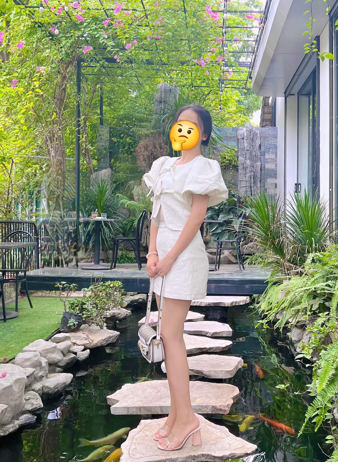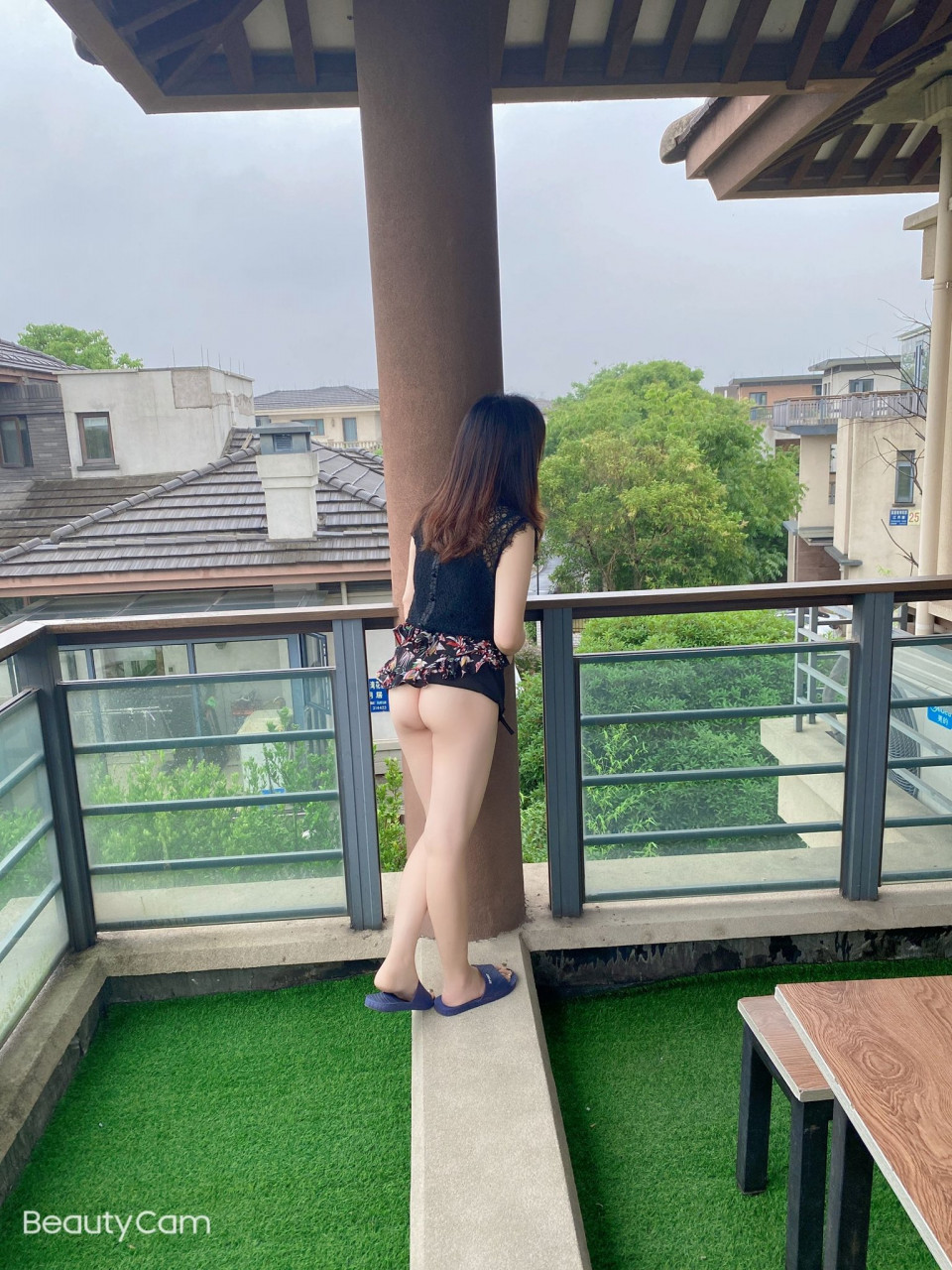 Vào đến nhà, Tuấn lấy nước cho Trang uống, cả 2 lên trên sân thượng chơi, ngắm cảnh chill chill, sân thượng nhà Tuấn có bàn ghế ngồi uống nước, thư giãn ngắm cảnh từ trên xuống đường khá đẹp. Chơi đc 1 lúc thì Tuấn bảo Trang đứng ra Tuấn chụp ảnh cho, vậy mà chụp ảnh đẹp đâu ko thấy, Trang vừa đứng ra lan can, Tuấn đã nhanh tay tốc váy Trang lên lột luôn quần lót của Trang ra, bắt Trang đứng cởi chuồng chụp ảnh, trông thật dâm đãng, đúng là con đĩ dâm :))