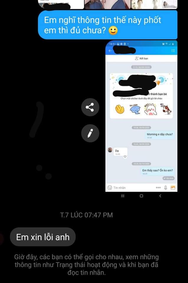 Tôi bèn dùng nick khác nhắn cô, số tiền nhỏ như thế thì lừa làm gì, anh có thể cho em nhiều hơn. Còn với ảnh và tên thật của em thì anh đủ bóc phốt rồi. Lập tức cô mở block và xin lỗi rối rít. Tôi càng trêu già, yêu cầu cô chuyển trả lại tiền. Cô bé chụp ảnh màn hình chỉ còn hơn trăm nghìn, bảo em thực sự cần tiền quá, anh cho em xin, em không nhận được nên em mới block anh.